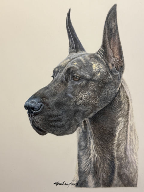 My mum used to keep me entertained with recycled paper from her work, that I could draw on. When I wasn't drawing, I was playing with the neighbourhood animals. Now you rarely find me without a cat on my lap, a Dane (or two) by my side while I draw. It is the thing that grounds me and gives me a sense of calmness in an ever changing world. I am a Canadian artist that focuses on coloured pencils and graphite animal portraits. Even though I have travelled the world and visited some amazing places, I am always happy to come back to beautiful BC, Canada.